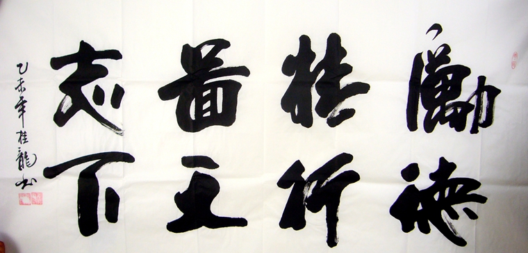 四字书法:春华秋实、润物无声、为人师表、师恩如山、春风化雨、穆如清风、播种希望、尊师重教、言传身教、闻过则喜、教学相长、心游万仞、有教无类、因材施教、虚怀若谷、明辨是非、宁静致远等。