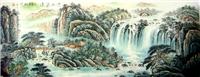 聚宝盆:此画是第一字画网推荐的风水画佳作。刘淋老师整幅作品根据风水布局、满含鸿运当头,财运如浩浩瀑水,生生不息之意。作品整体看来象个金元宝。远山层峦叠峰,更表达了源远流长的意境。因此挂山水画是非常吉利的。将此风水画悬挂于厅堂,立添主人财气,令人一见即生舒适安逸之感,获人兴财旺之效。青山绿松间配上了瀑布流水,不仅给画面增添了灵韵和动感,更表现了一种财源滚滚,源远流长的吉祥意义。非常适合家居,企业正堂装挂及馈赠亲朋好友的上佳之选~!!!
