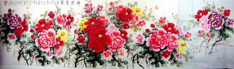 • 产品简介: 国画富贵牡丹画,王柳春老师小丈二作品,画芯长3.6米,适合大面积客厅、大型宴会厅的悬挂,气派非凡,若装裱后长达将超过4米。