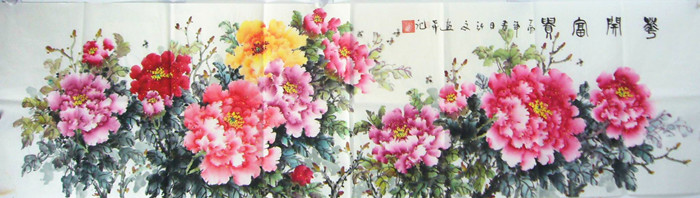 • 产品简介: 六尺对开花开富贵牡丹画,牡丹高手弘文老师实力作品。