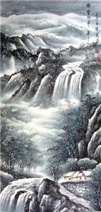 竖幅国画山水作品