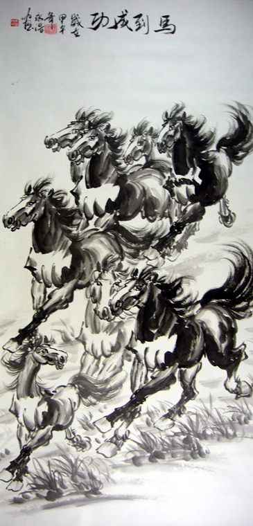第一字画网的四尺奔马图,作品尽显马之神韵,裱完后的长度达到1.8米左右,这幅四尺奔马图挂在家里的客厅或是公司的会议室都是非常气派,送人也是很不错的选择。如果放在画廊出售,永浩老师此幅四尺奔马图的标价起码在1500元左右。
