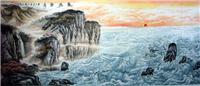 第一字画网的八尺山水风景国画,这是一幅大气磅礴的作品,彩墨交融,墨色清雅,是刘淋老师的实力作品。瀑布山水风景画若裱完后尺寸达到2.8米左右,如果放在画廊出售,咏茗老师此幅小八尺山水风景国画的标价在4800元左右。这幅作品适合挂在家里的客厅、或公司的会议室,能看出是幅效果水准颇高的小八尺山水佳作。