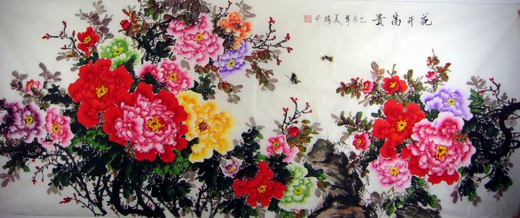 第一字画网的八尺写意牡丹,这幅小八尺的牡丹作品画风温馨、栩栩如生,牡丹寓意着富贵吉祥,作品上又写着花开富贵四个字,挂在家里客厅或是送人都是非常不错的选择,如果放在画廊出售,王美琦老师此幅八尺写意牡丹的标价在1800元左右。