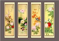 国画四条屏花鸟画