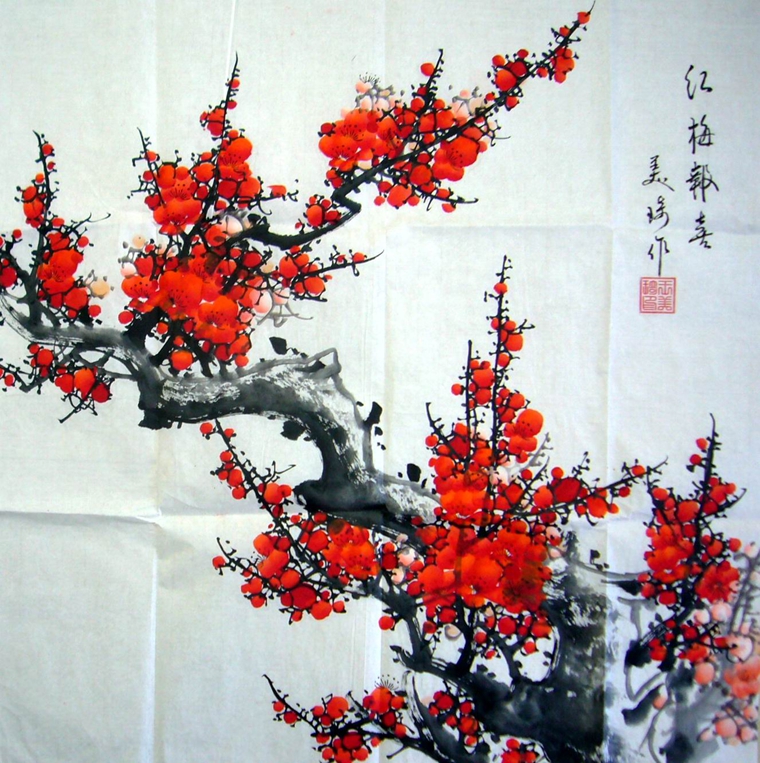 • 产品简介: 四尺斗方国画红梅,美琦老师梅花作品。