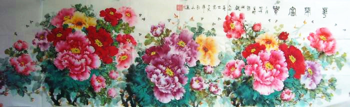 • 产品简介: 八尺国画牡丹精品图,牡丹画高手沈弘文老师八尺对开佳作。