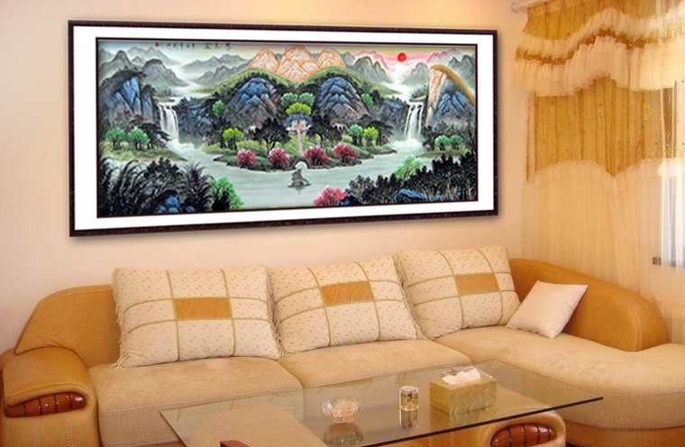 • 产品简介: 国画精品,风水画的代表作聚宝盆。八尺作品,实力画家刘淋老师的真人风水画。 风水挂画,山水画风水,客厅风水画,家居风水画。
