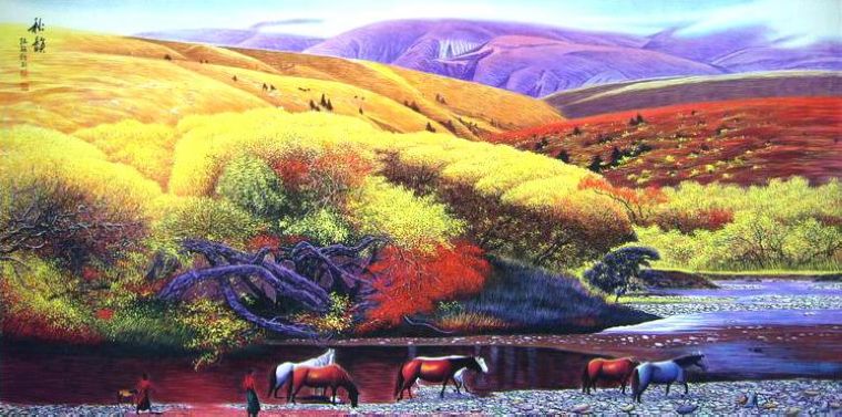 第一字画网的六尺精品风景画,这幅六尺的国画风景作品装裱后长2.2米左右,是一幅生机勃勃的作品,是齐鲁画家韩梅的参展作品,并且是十分少见的六尺风景画,作品的画风十分细腻,层层渲染出秋韵的主题,作品意境深远,色彩绚丽,开阔潇洒,清丽空灵,又注重情趣,奔放中见天成。如果放在画廊出售,韩梅老师此幅六尺精品风景画的标价在7000元左右。