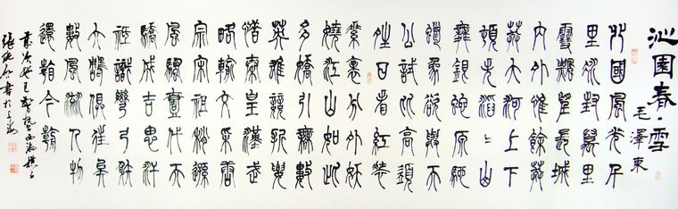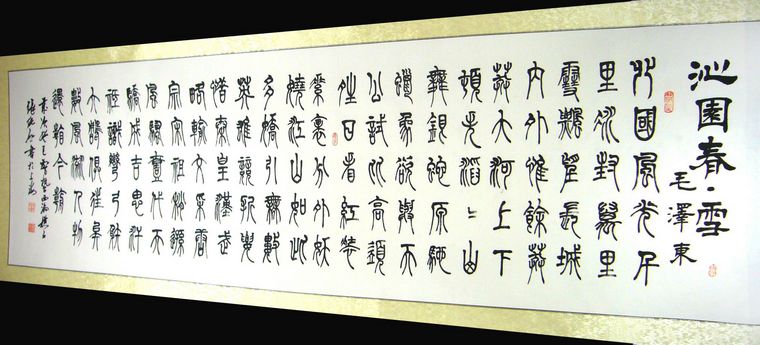 第一字画网的沁园春雪书法,适合挂在公司的办公室,或是家里的书房,这幅四尺书法沁园春雪是书法名家张纯启老师的作品,装裱后长度约在1.8米左右,这幅篆书作品笔法老练,功力深厚,十分雅致,如果放在画廊出售,张纯启老师此幅四尺书法沁园春雪的标价大约在5000元左右。
