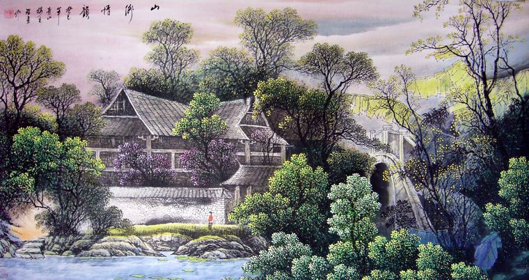 国画乡村山水