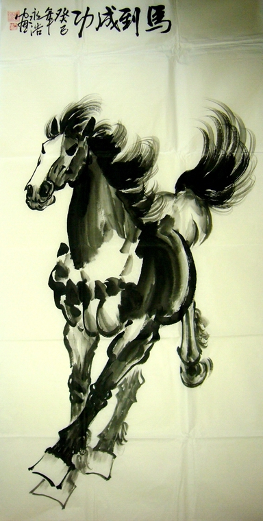 第一字画网的四尺骏马图,作品尽显马之神韵,裱完后的长度将达到1.8米左右,这幅四尺骏马图挂在家里的客厅或是公司的会客室都是非常气派,送人也是很不错的选择。如果放在画廊出售,永浩老师此幅四尺骏马图的标价起码在1200元左右。