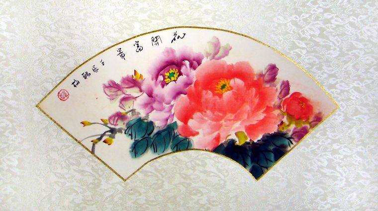 扇形国画牡丹