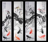 荷花鱼四条屏