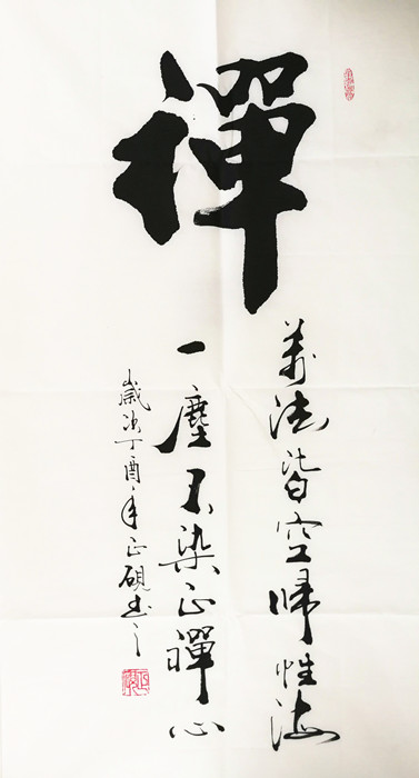 第一字画网的书法作品禅,适合挂在家里的客厅或书房,这幅书法禅是广西书法家甘正砚老师的作品,用的是四尺宣纸,装裱后长度约在1.6米左右,作品笔法老练苍劲大气,如果放在画廊出售,甘正砚老师这幅书法作品禅的价格大约在1200元左右。