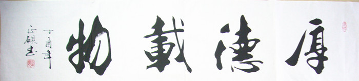 第一字画网的四尺对开书法厚德载物,适合作为挂在家里客厅或书房,也适合挂在公司的办公室。这幅厚德载物书法是正砚老师的作品,装裱后长度约在1.8米左右,作品笔法老练苍劲大气,如果放在画廊出售,甘正砚老师此幅四尺对开书法厚德载物的标价大约在850元左右。