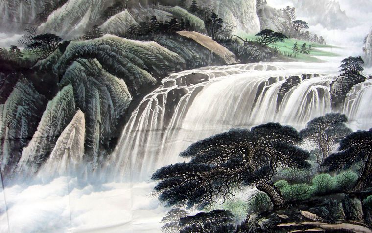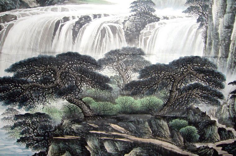 • 产品简介: 巨幅客厅山水背景画,谭佰川大丈二作品。
