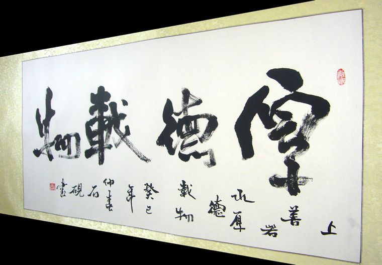 第一字画网厚德载物书法作品,是书法家李俊老师的四尺作品,已经装裱完成,适合挂在办公室或家里的书房,如果放在画廊出售,李俊老师此副四尺厚德载物书法的标价在2000元左右。