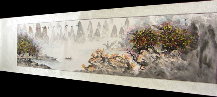 横幅字画作品装裱成裱杆的效果