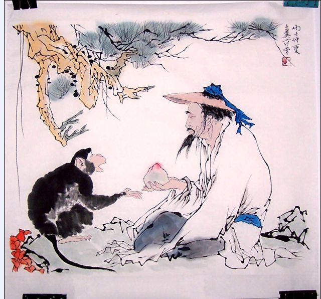 第一字画网的人物画献桃,是一副写意风格古代人物作品,模仿名家范曾老师的三尺斗方的水墨人物画意境生动,如果放在画廊出售,老师这幅斗方水墨人物画标价大约在2000元左右。