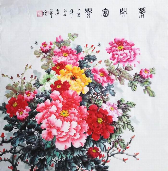 • 产品简介: 客厅字画富贵牡丹国画,牡丹国画行家沈弘文六尺斗方牡丹国画作品,未装裱。