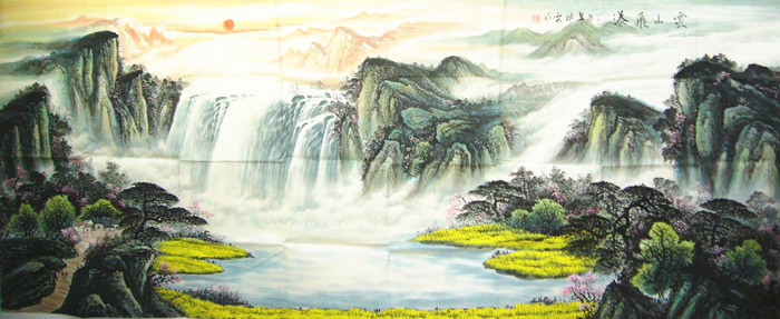 第一字画网的客厅山水画,小八尺山水画若裱完后尺寸近2.8米左右,是一幅挺有意境的小八尺山水作品,作品清新秀雅,布局合理,这幅作品视觉效果上佳,如果放在画廊出售,林云老师此幅小八尺山水画的标价在5000元左右。