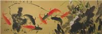 • 产品简介: 国画鱼,鱼国画,工笔鱼,谭佰川老师四尺荷花九鱼图作品.