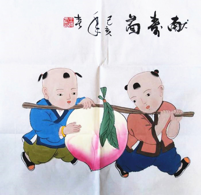 • 产品简介: 贺寿祝寿图,王柳春老师贺寿画献桃图。