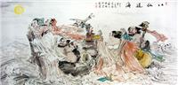 第一字画网的贺寿祝寿图,这幅四尺贺寿祝寿图裱完后尺寸近0.6米见方,是一副水准上佳的工笔画作品,作品画风细腻、人物生动栩栩如生,挂在家里客厅或是送人都是非常不错的选择,如果放在画廊出售,王柳春老师此幅贺寿祝寿图寿桃图的标价在1500元左右。