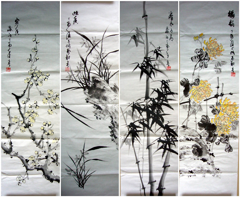 梅兰竹菊四条屏