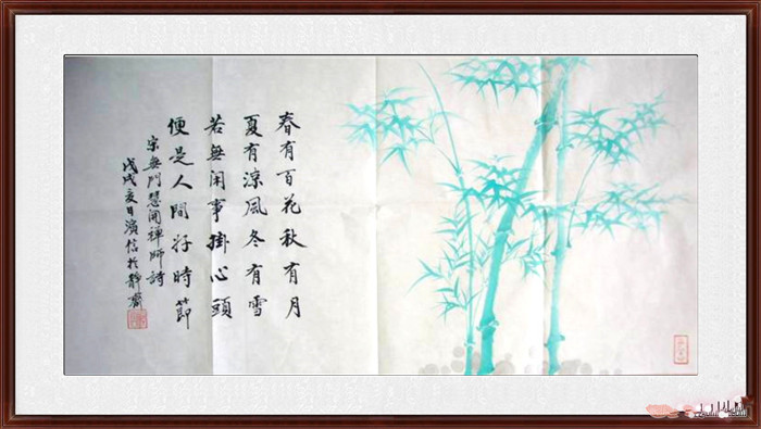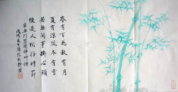 • 产品简介: 绿竹画竹子图,可食无肉 不可居无竹,演信法师作品。