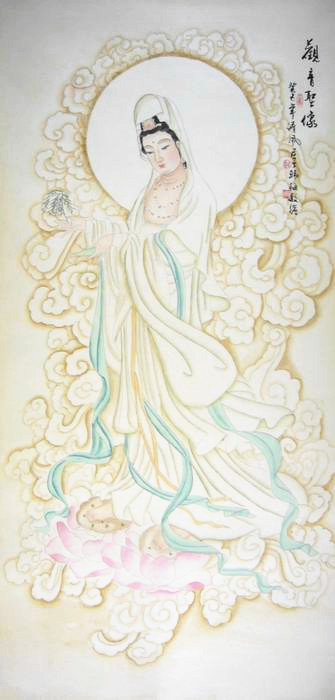 • 产品简介: 名家人物画观音像中堂画,齐鲁名家韩梅四尺作品。