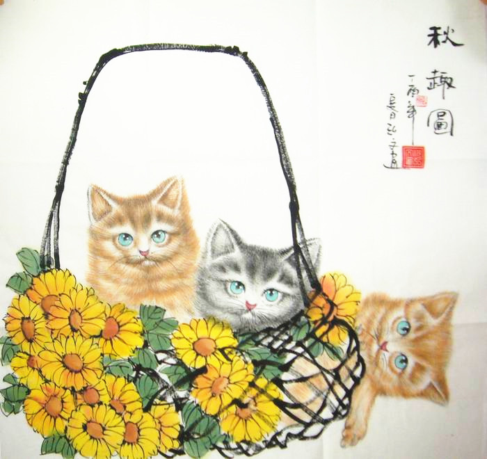 第一字画网的玄关斗方花鸟画,这幅四尺斗方写意国画动物画裱完后尺寸近0.8米,是一幅水准上佳的作品,作品画风细腻、栩栩如生,向日葵又叫太阳花,象征着希望、阳光、快乐,三只小猫活灵活现,快乐的一家三口,挂在家里客厅、玄关或是送人都是非常不错的选择,如果放在画廊出售,沈弘文老师此幅写意国画动物画的标价在1500元左右。此幅优秀国画动物画作品,仅售580元,从作品的画面的细节处可以看出弘文老师的画功十分了得,适合挂在家里的客厅,喜气吉祥、富贵满堂。