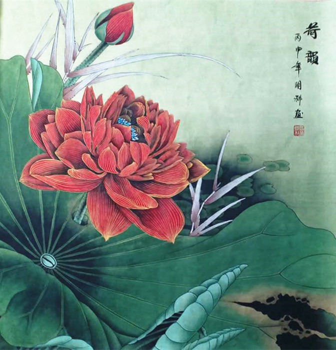 • 产品简介: 工笔荷花图卧室挂画,客厅花鸟画诸葛明科老师作品。