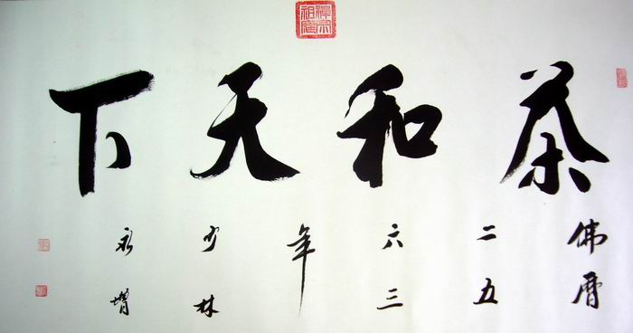 • 产品简介: 茶和天下(此作品询价),释永增大师四尺书法。