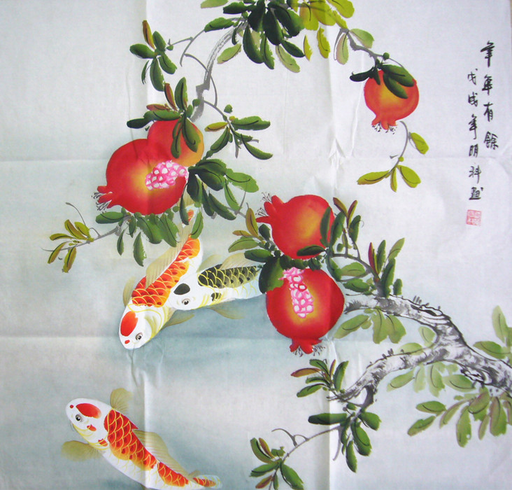 • 产品简介: 斗方石榴鱼图,被誉为“最吉利的风水画”, 画家诸葛明科四尺斗方工笔鱼佳作。