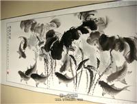 • 产品简介: 客厅字画荷花鲤鱼图,齐鲁名家韩梅老师作品,未装裱。