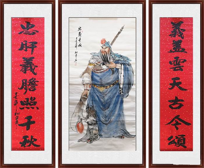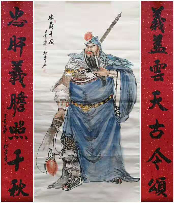 • 产品简介: 四尺关公中堂画+对联,张松平老师作品。