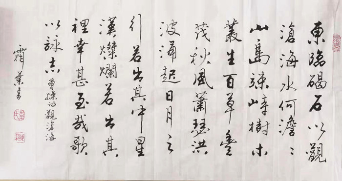 第一字画网的小横幅书法观沧海这幅小横幅书法作品观沧海适合挂在公司的办公室,或是挂家里的书房,装裱后尺寸近1.2米长,气派非凡,笔法老练,如果放在画廊出售,李正枢老师此幅办公室字画书法观沧海的标价在1200元左右。李正枢老师,字霜叶,云南的老书法家,擅长行楷,几十年的书法功力,功力深厚。李老师四尺对开的书法在云南的艺术品拍卖行已经是2000元起拍价了,书法的实力不用细说,光看字的水准就知道了。