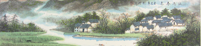 第一字画网客厅山水画国画,这幅四尺对开山水作品裱完后尺寸达到1.8米左右,是一幅刘淋老师的写实新作,将一派江南水乡的秀色生动的展现在画面中,流水、人家等等细节就能看出老师的深厚画功,适合挂在客厅或会客室欣赏,如果放在画廊出售,刘淋老师此幅四尺江南山水画的标价在1800元左右。