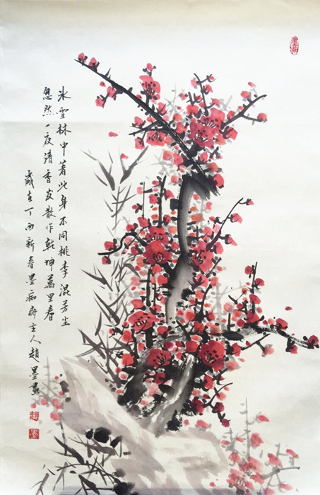 • 产品简介: 写意红梅报春图,赵墨老师作品。
