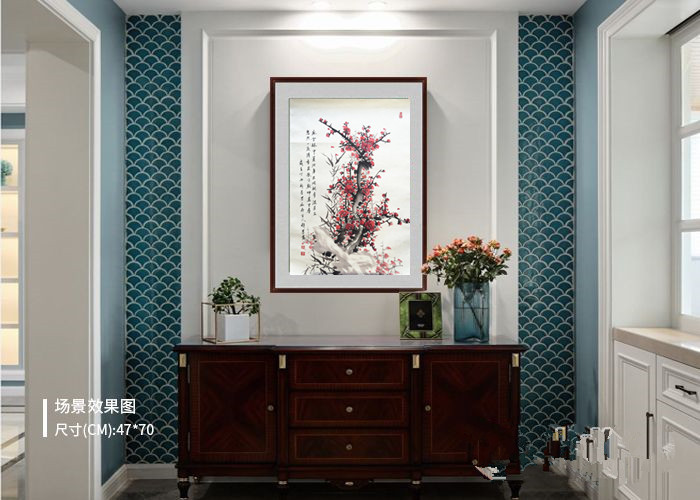 第一字画网的写意红梅报春图,是幅适合客厅或居室挂的写意红梅报春图。这幅家居花鸟画是副温馨祥和的花鸟作品,装裱后长度达到1.2米左右,作品细腻生动、栩栩如生。如果放在画廊出售,赵墨老师此幅写意红梅报春图的标价大约在1600元左右。