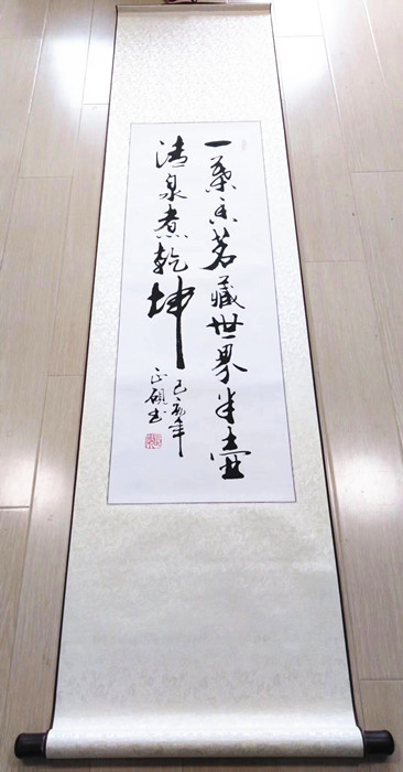 竖幅字画作品装裱成轴的效果(方便直接悬挂)