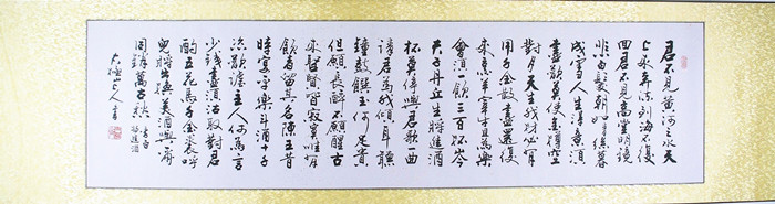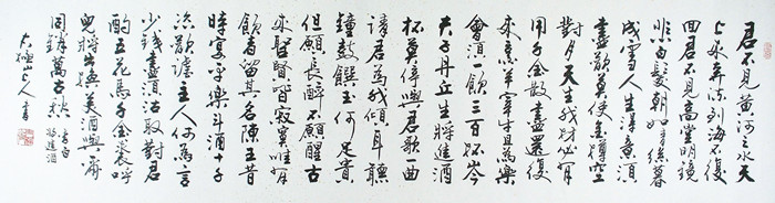 • 产品简介: 将进酒行书书法作品 ,书法家李正枢老师三尺对开作品,已装裱。