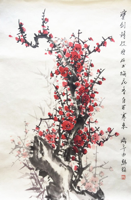 第一字画网的写意红梅报春图,是幅适合客厅或居室挂的写意红梅报春图。这幅家居花鸟画是副温馨祥和的花鸟作品,装裱后长度达到1.2米左右,作品细腻生动、栩栩如生。如果放在画廊出售,赵墨老师此幅写意红梅报春图的标价大约在1600元左右。