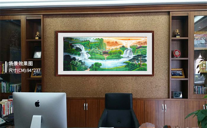 第一字画网的招财山水画旭日东升山水画,是一副大气磅礴的作品,彩墨交融,墨色清雅,是王咏茗老师的用心作品。小八尺大写意山水裱完后尺寸达到3米左右,如果放在画廊出售,王咏茗此副大写意山水的标价在7000元左右。这幅作品适合挂在家里的客厅、或公司的办公室、会议室等场合,作品布局合理、意境深动。