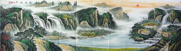 八尺对开山水画