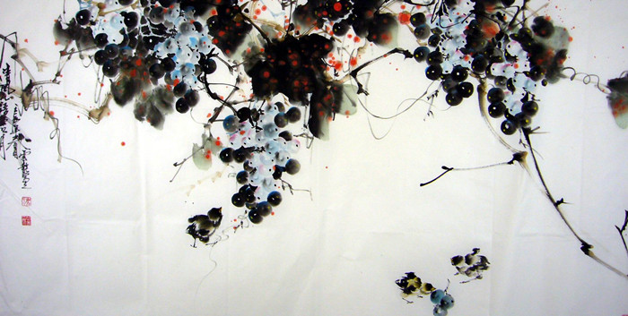 • 产品简介: 写意葡萄图,硕果累累,崔想善老师作品。