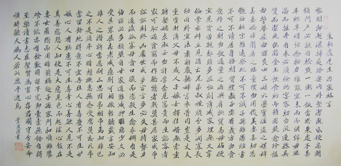 • 产品简介: 四尺书法朱子治家格言,四尺书法,难得一见的楷书佳作朱柏庐治家格言,已装裱。