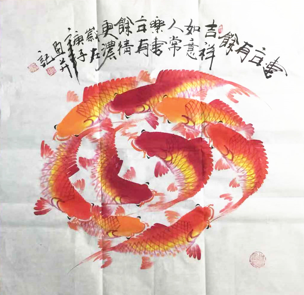 • 产品简介: 四尺斗方九鱼图鱼 ,四尺斗方作品,未装裱。
